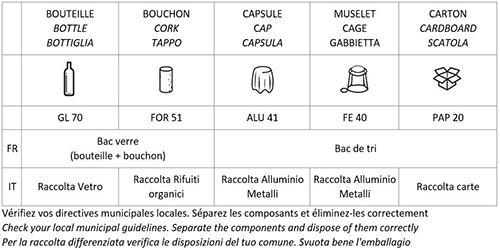Ingrédients : Raisins, sucre, conservateurs ( sulfites) , stabilisants ( carboxyméthylcellulose ), liqueur de tirage, liqueur d'expédition.